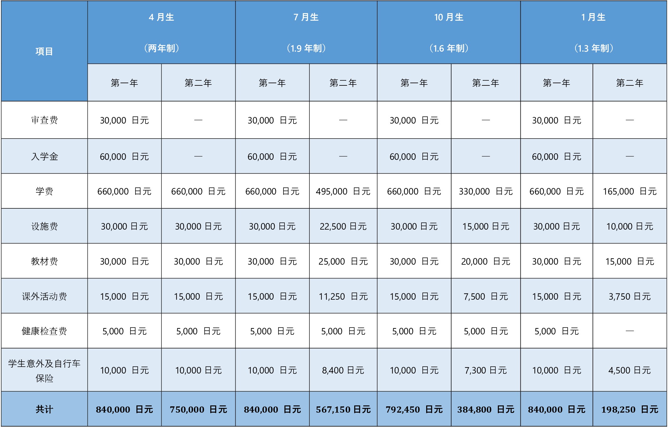 • 入学时期 7月或4月